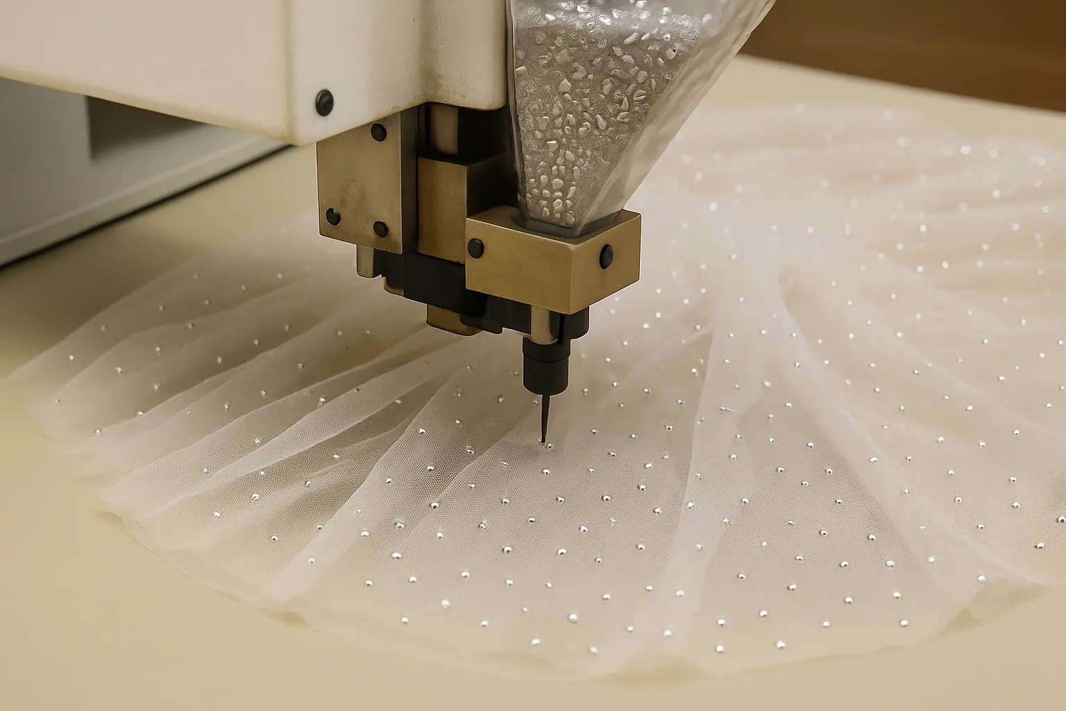 These machines are widely used in bridal factories, performance costume houses, and designer brands.