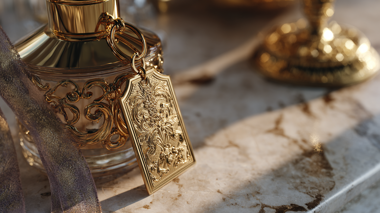 Metal Labels & Plates – Timeless, durable, and luxurious. Perfect for perfume bottles, wine, and premium fashion packaging.